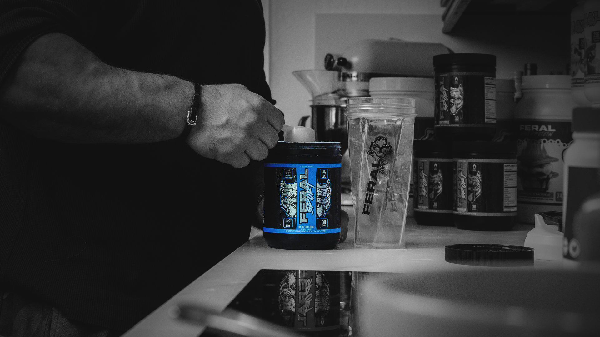 WARNING: FERAL SUPPS Products are intended only for healthy adjusts over the age of 18. Consult a physician before using this product if you are taking any medications or other dietary supplements. Do not use if you are currently pregnant or nursing, could be pregnant, or are attempting to become pregnant. Discontinue two weeks prior to any surgery. If you are a performance athlete, please check with your sanctioning body prior to use to ensure compliance. Do not use if sensitive to caffeine. Do not exceed recommended dose. Keep Out Of Reach Of Children. STORE IN A COOL, DRY PLACE / DO NOT EXPOSE TO DIRECT SUNLIGHT OR EXCESSIVE HEAT (ABOVE 90F). SHAKE CONTAINER PRIOR TO EACH USE FOR OPTIMAL EFFICACY.